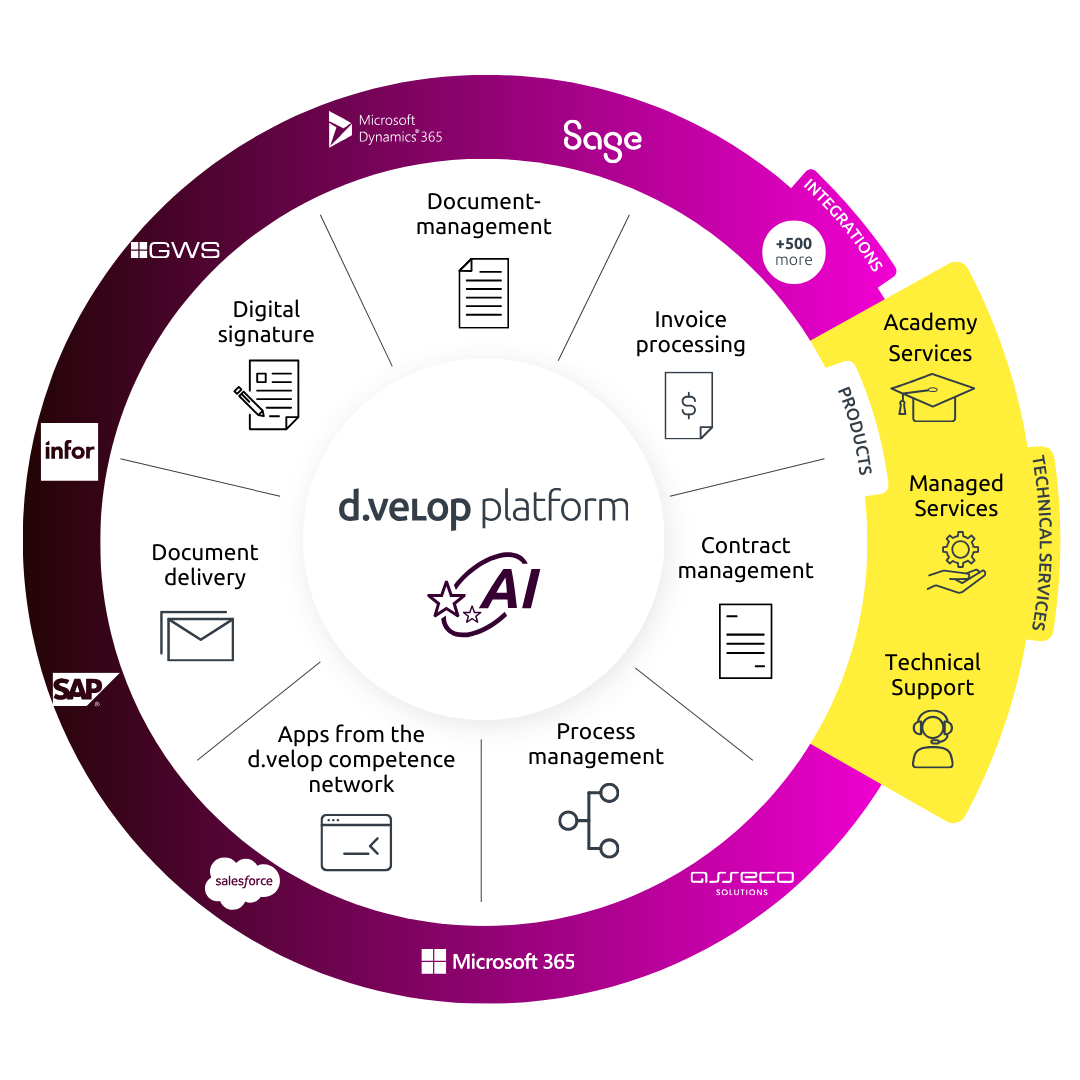 Completing the offering, the d.velop platform provides technical services, giving users access to comprehensive support and training opportunities.