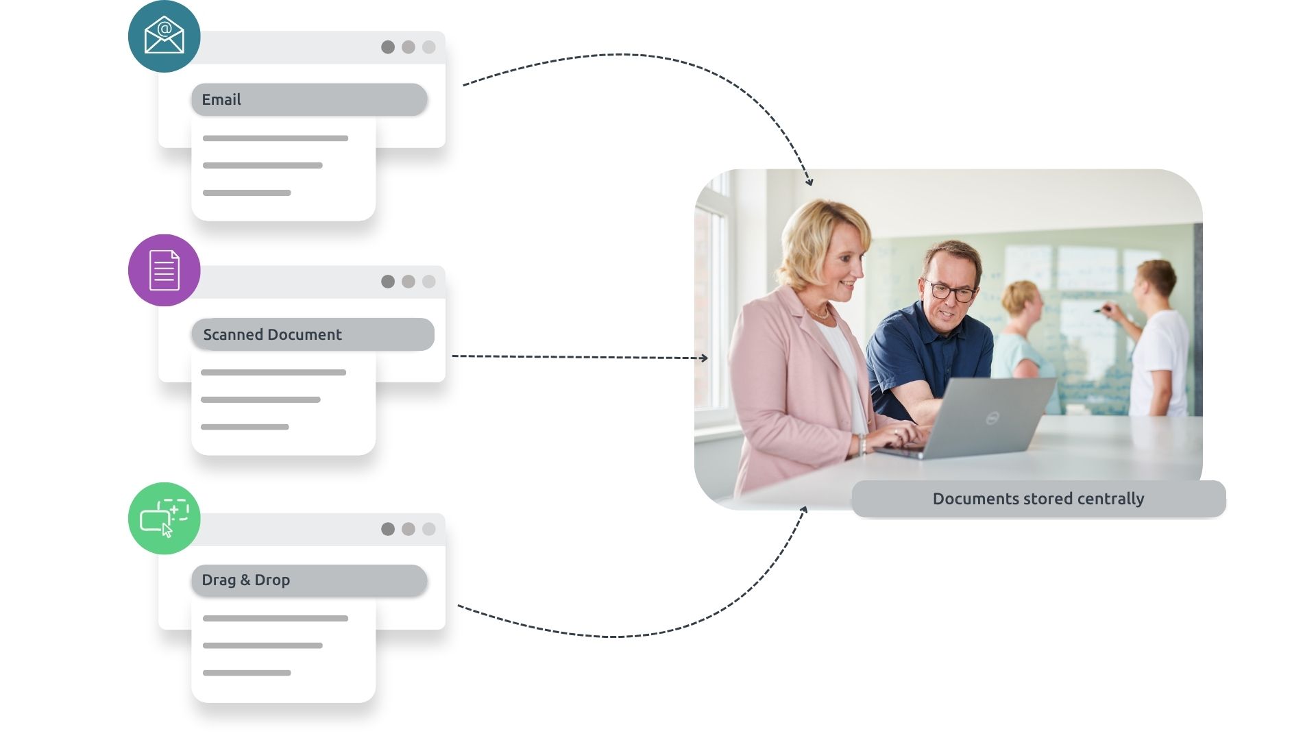 Whether via email inboxes or manually using drag & drop – all documents can be stored with ease, even directly from Microsoft Outlook.