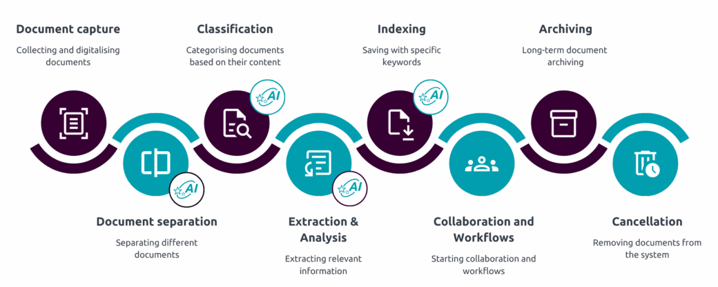 The modular architecture gives you the flexibility to integrate different AI providers and customise your automation. Our AI-powered solutions offer a range of features specifically designed to intelligently organise and automate your document management processes. Our technology automates document processing in a few efficient steps: