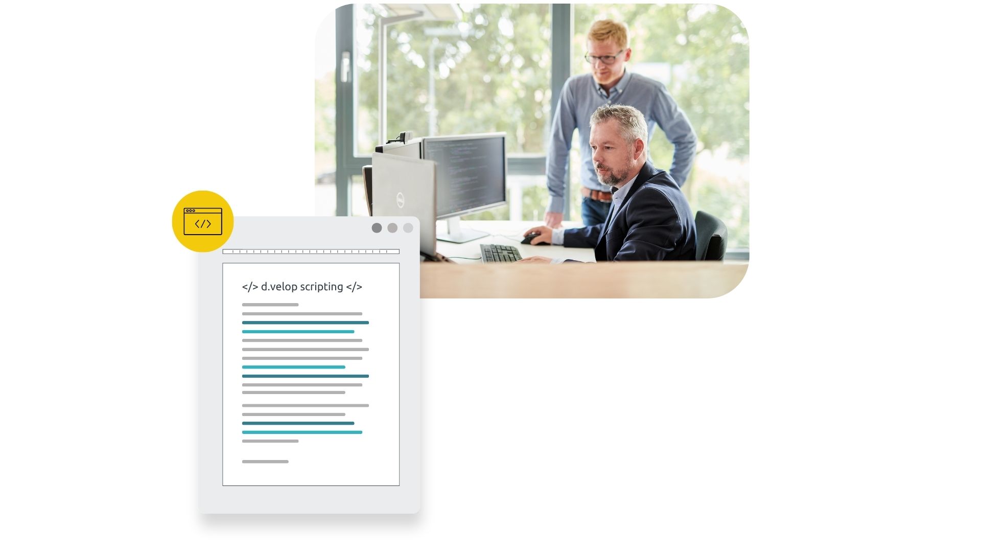 With the d.velop process studio, you can overcome system boundaries. Thanks to the powerful REST API, you can, for example, automatically populate forms with data from third-party systems. In addition, the Scripting Engine allows you to integrate third-party systems into your workflows, and the Microsoft Power Platform connector enables the integration of other systems, such as Microsoft Teams, into your process management tool.