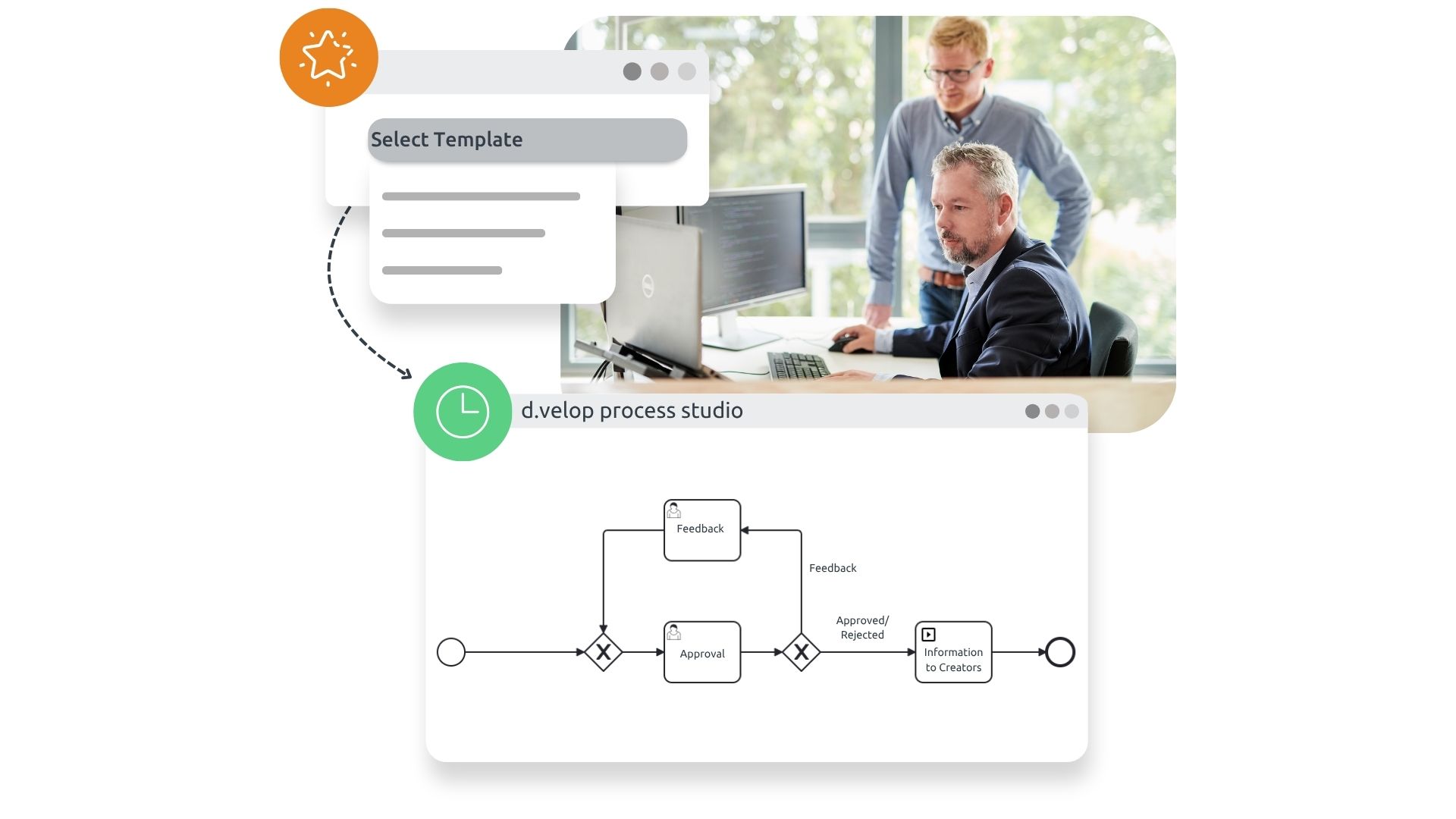 Create processes efficiently with access to templates from both the d.velop Template Library and your own use cases.